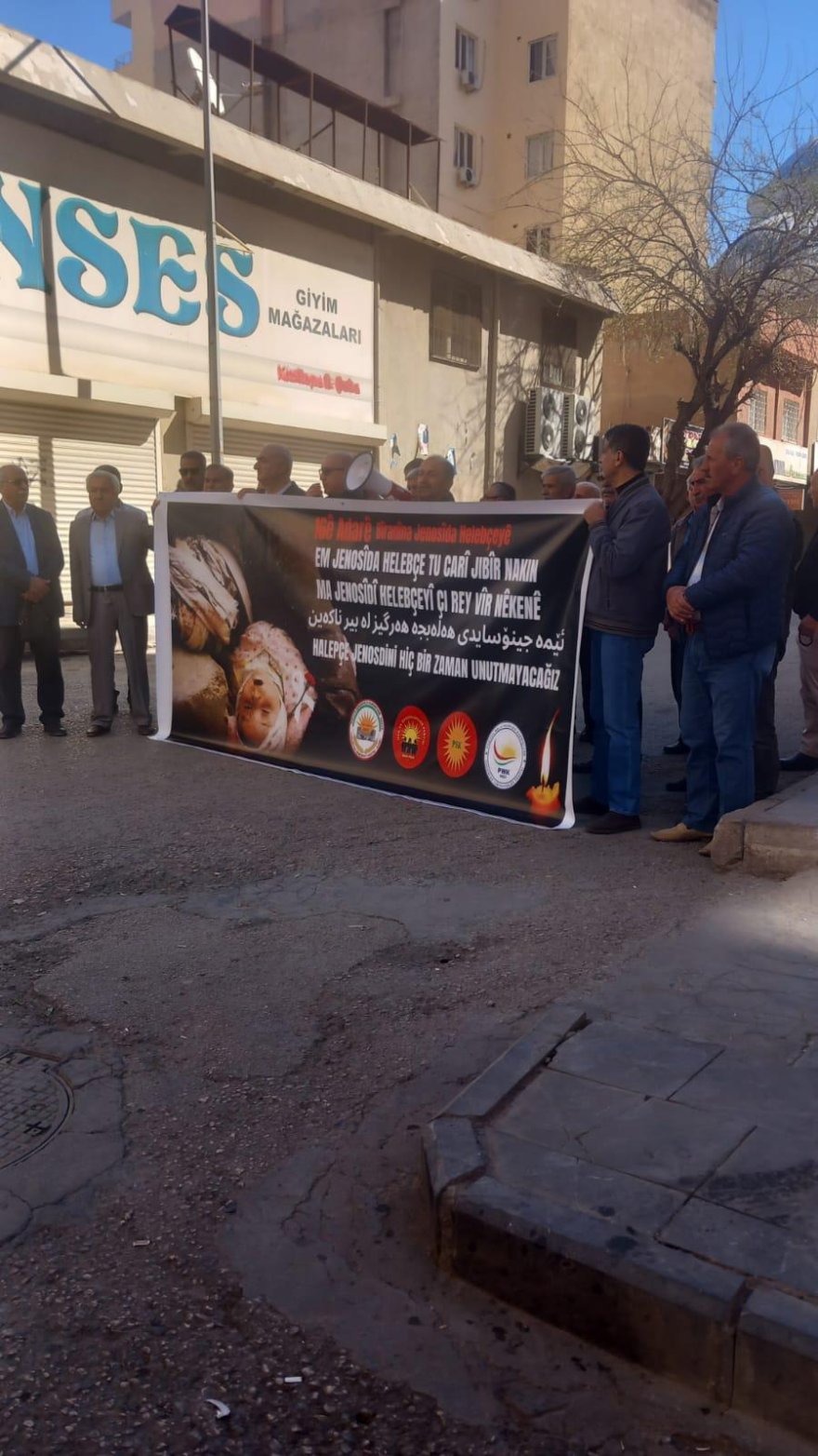 Partîya Maf û Aazadîyan (HAK-PAR), Partîya Demokrat a Kurdistanê-Bakur (PDK-BAKUR), Partîya Sosyalîst a Kurdistanê (PSK), Partîya Welatparêzên Kurdistanê (PWK), roja yekşemê, 16ê Aadara 2025ê, li Amedê û navçeya Qoserê ya Mêrdînê bi civînên çapamenîyê û bi rêzgirtinê, Jenosîda Helebçeyê bibîranîn.