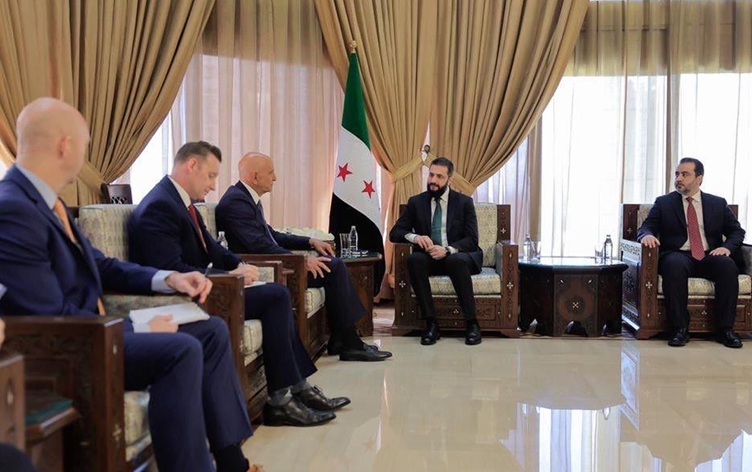 Tom Barrack li ser navê Serokê Amerîkayê Donald Trump û Wezîrê Karên Derve Marco Rubio li Şamê bi Serokkomarê Sûriyeyê Ehmed Şer û Wezîrê Karên Derve Eshed Şeybanî re hevdîtinek pêk anî.