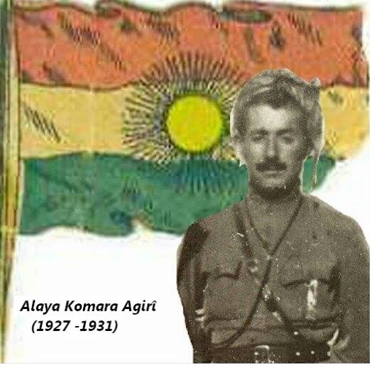 Îhsan Nûrî Paşa (1893-1976) Lehengê serîhildana Agiriyê di bîranînên xwe de li ser ala Kurdistanê dinivisîne. Di 1926an de, Bro Heskî Têlî, ji êla Celaliyan, li çiyayê Agriyê serî hildide. Di sala 1927an de Îhsan Nûrî xwe digihîne Çiyayê Agirî, êdî rêberiya şoreşê dike. Ji alî rêxistina Xoybûnê ve wek serfermandarê leşkerî tê danîn. Di wê salê de ala sê rengîn ya serxwebûna Kurdistanê, ku di sala 1920 an de ya “Teşkîlatî Ictimaîye Cemiyetî” qebûl kiribû, rêxistina Xoybûnê ew ala şandin Agiriyê. Îhsan Nûrî Paşa wê alê cara pêşîn li Agiriyê bilind dike. Îhsan Nûrî Paşa dibêje:“Min posteke esker ji xortên nebezê Kurdan amade kir, ala Kurdistanê li serê çiyayê Agiriyê daçikand. Hêzên Romî ku li dora bajarê Bayezîdê bûn. Pasevanên qaremanên Agiriyê ji dûr ve ji bo alê hurra dikişandin û li çepikan dixistin. Wê çaxê li Agiriyê teşkîlateke eskerî, îdareyeke Kurdî hebû.”