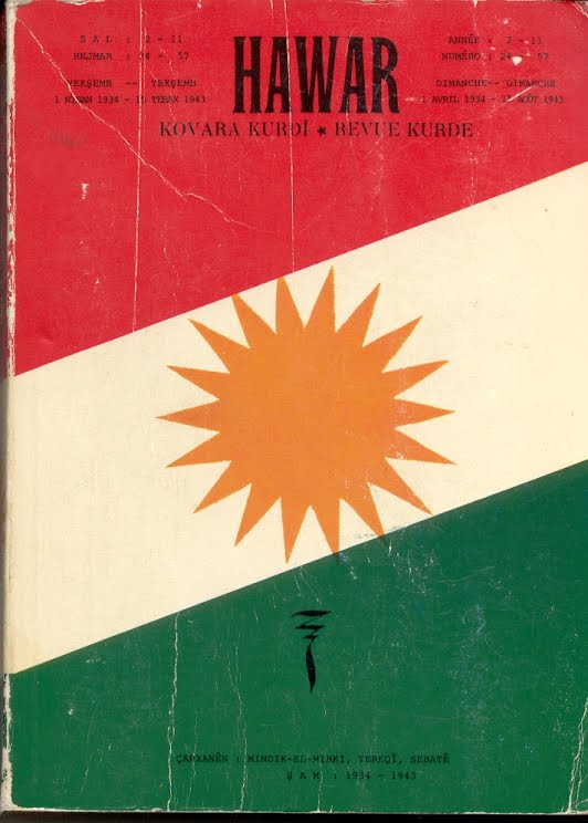 Di sala 1932’an de Mîr Celadet Alî Bedirxan kovara xwe (Hawar), li Şamê diweşand, Mîr Celadet yek ji serokên komela Xoybûnê û şoreşa Araratê bû, wî di hejmara 5’an de helbestek bi navê (Ala Kurdan) weşandiye:
